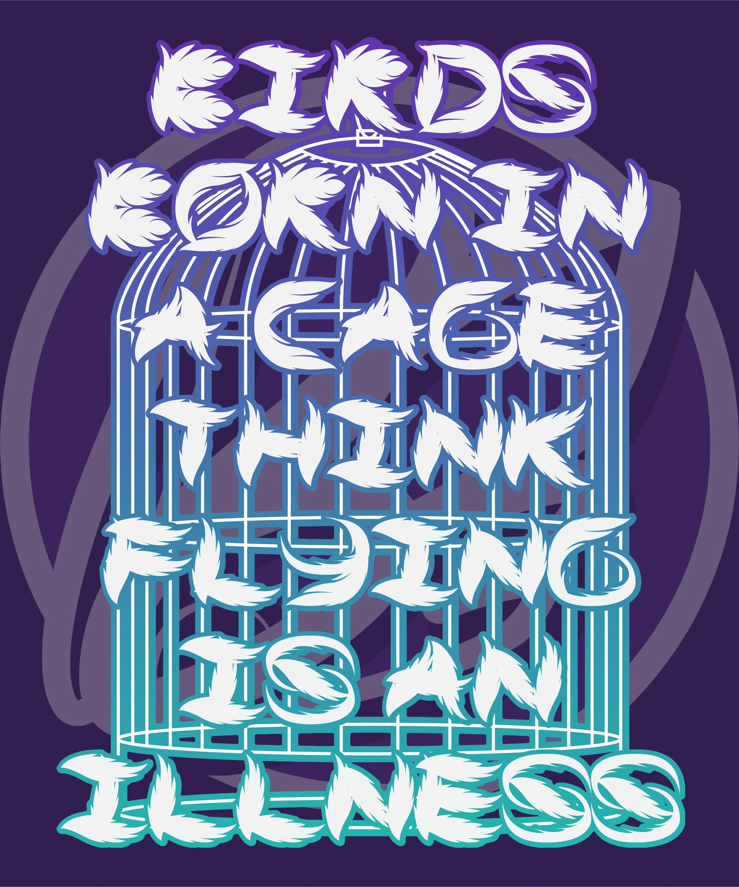 Presenting most of the letters in a more defined context, I integrated this decorative font into a Truism — “Birds born in a cage think flying is an illness.” - Alejandro Jodorowsky