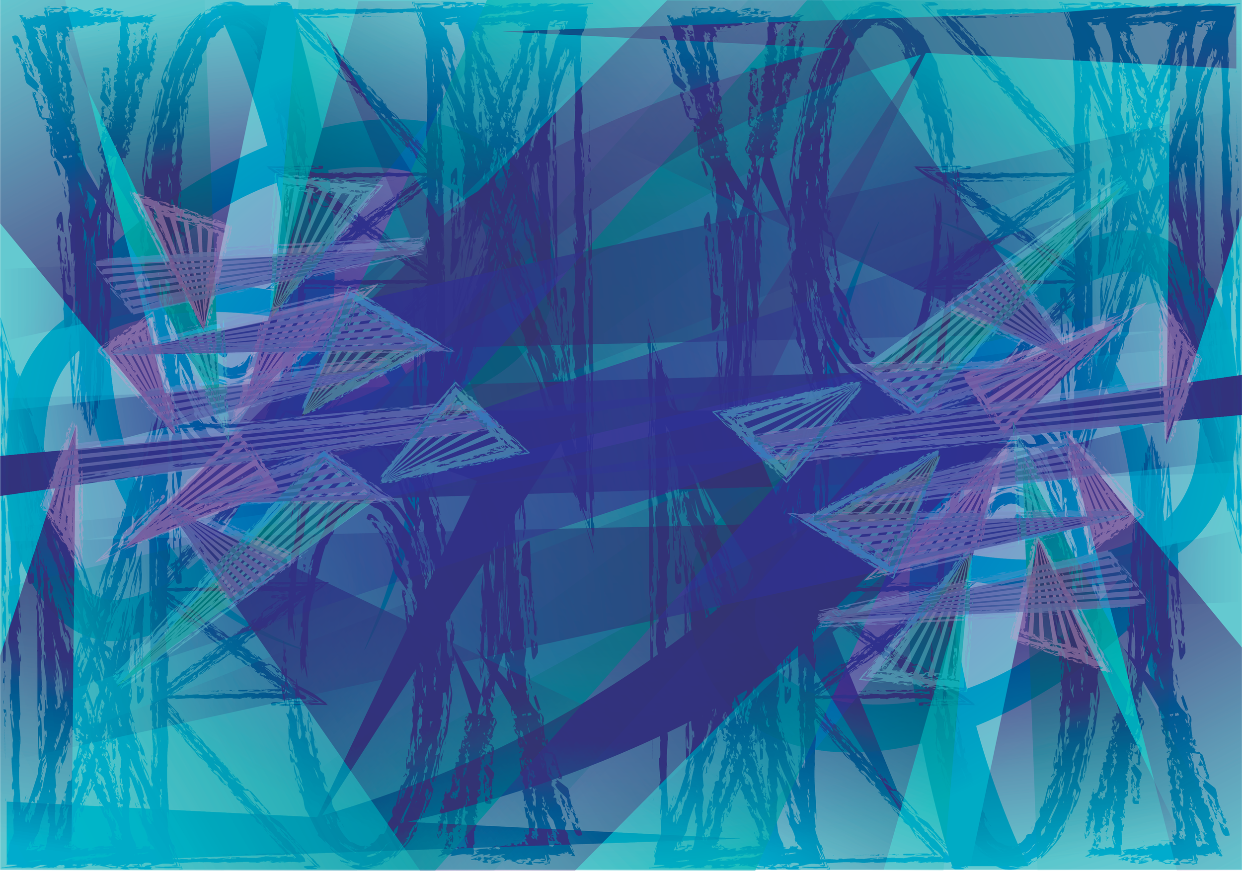 The second illustration is an abstract approach to presenting the different Japanese scripts for dream, as a multicoloured kanji 夢 (chinese character), turquoise hiragana ゆめ (for Japanese words), purple katakana ユメ (for non-Japanese words) and blue romaji yume (for romanized Japanese), obscured and reflected for complexity & balance. The background splices are extensions from the strokes of the kanji.