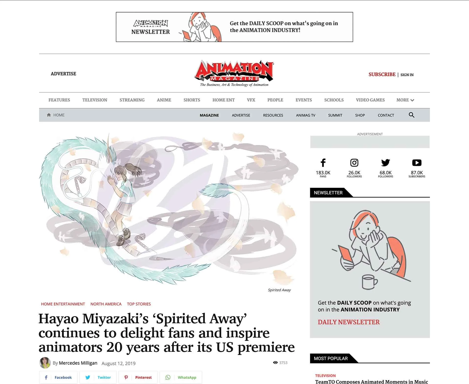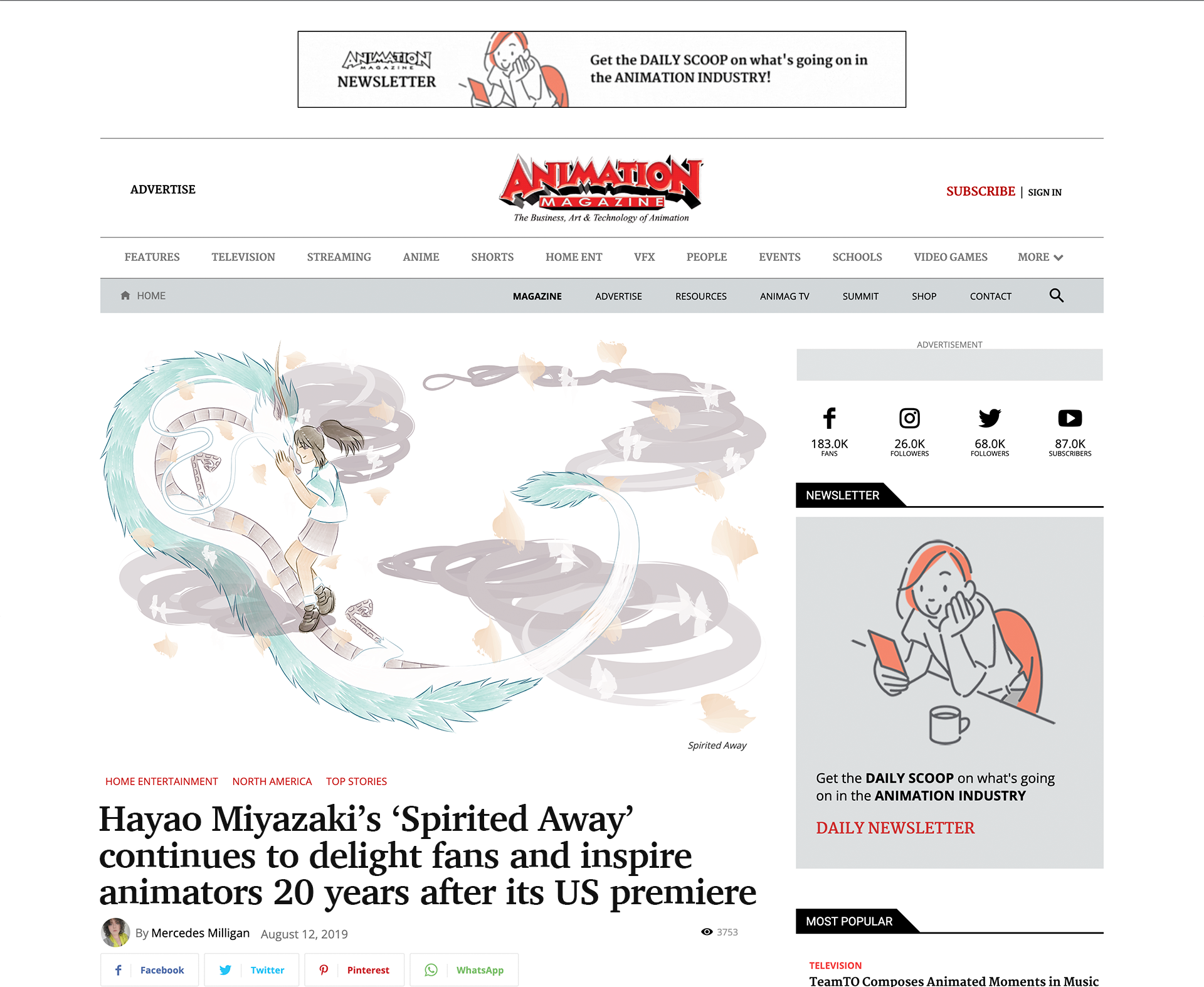 “Spirited Away” digital illustrations for a magazine spread & website article.